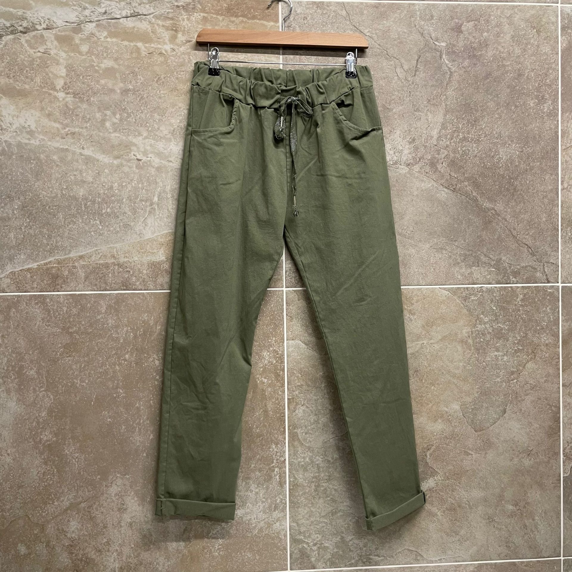 Order your Made in Italy Khaki Green Magic Trousers today and experience the magic for yourself!