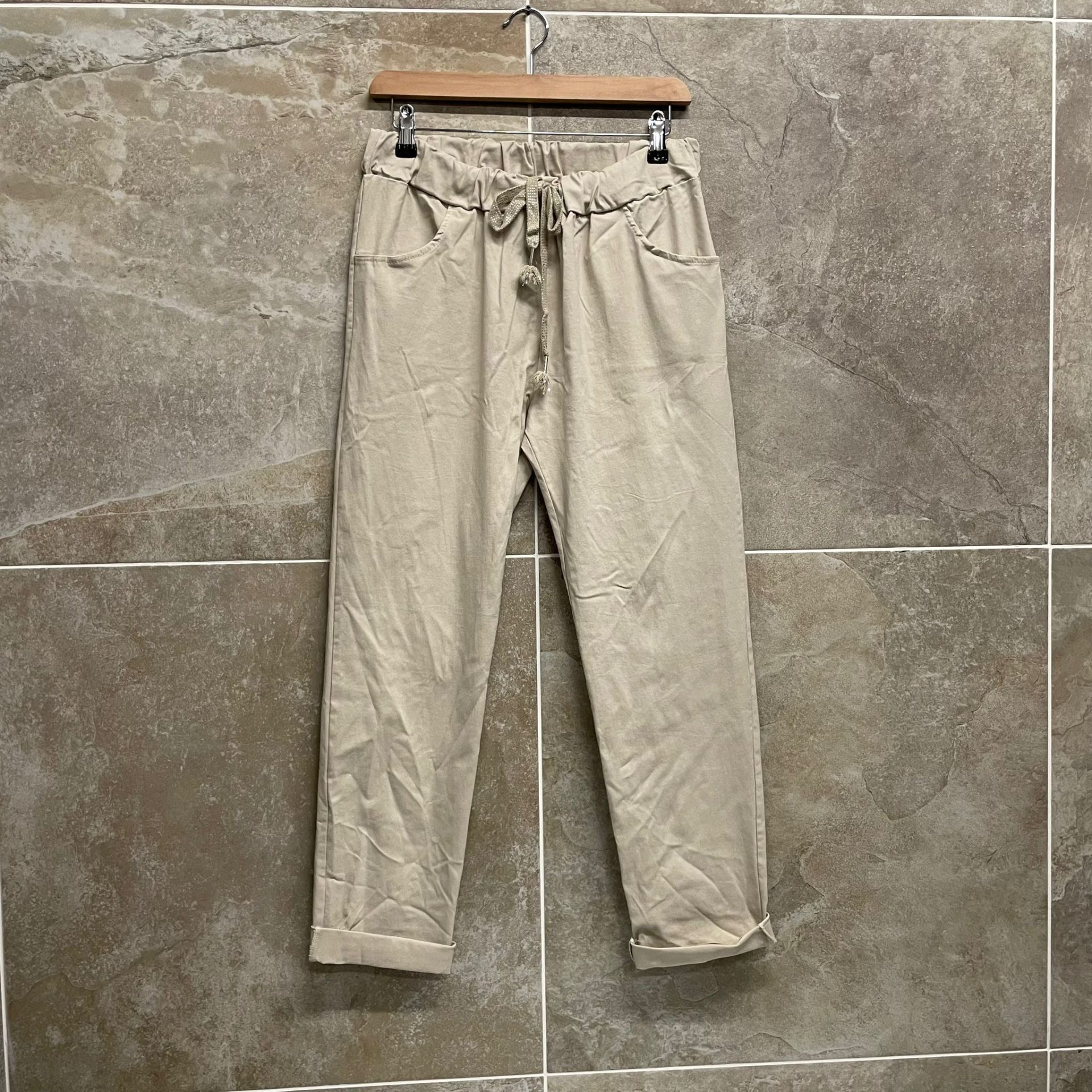 These Made in Italy Stone Magic Trousers, regularly priced at £35, are now available at the unbeatable price of just £20! These trousers are a favourite among our customers here at Copperbox, loved for their versatility and comfort.