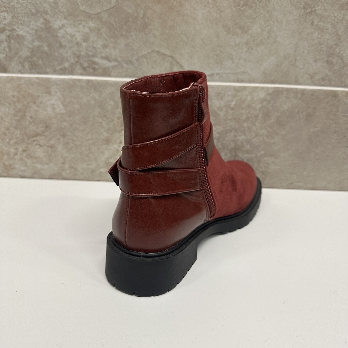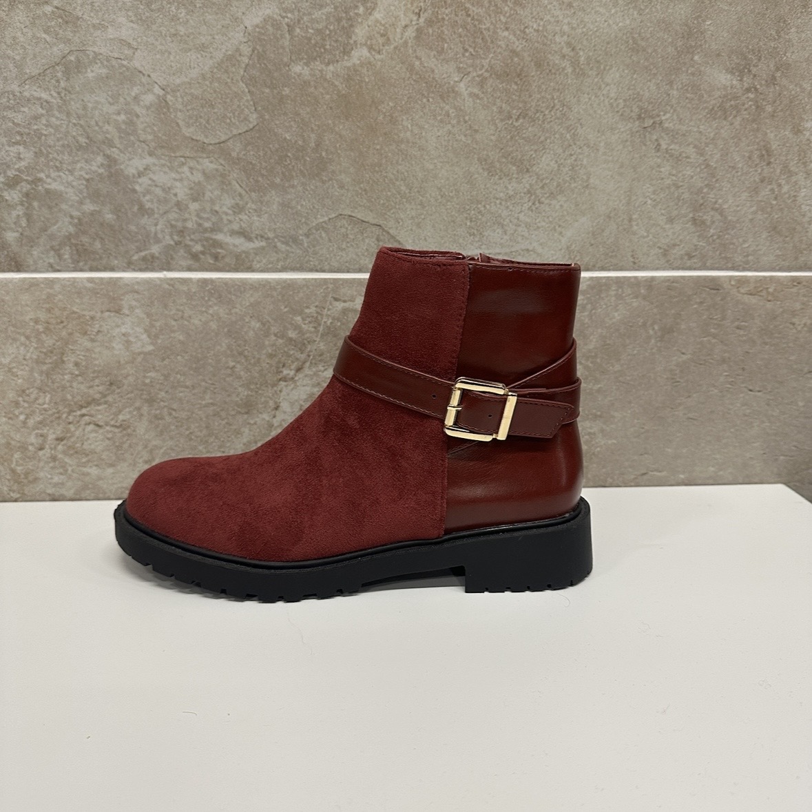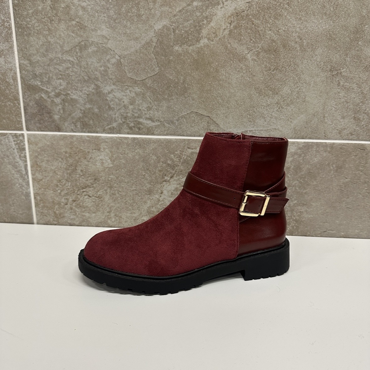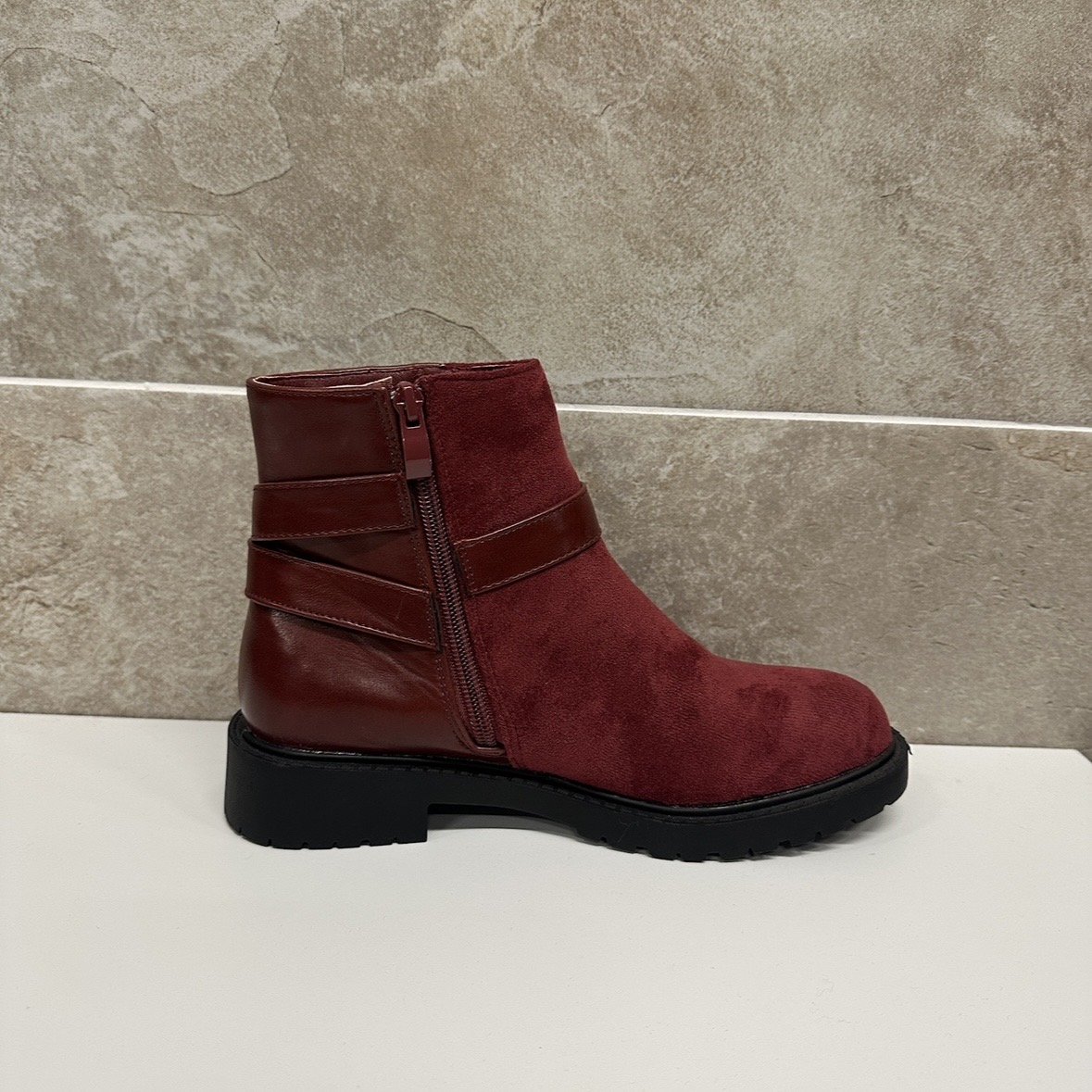 Women’s Burgundy Buckle Suede Ankle Boots